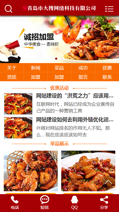 美食小吃餐饮加盟类帝国CMS手机企业网站模板源码
